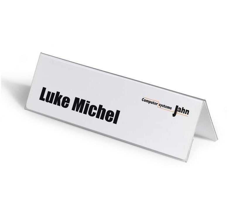 Konferenciákra, szemináriumokra, recepciós pultokra. Betétlap elkészíthetó a DURAPRINT szoftver segítségével. Betétlap mérete: 105/210 x 297 mm
