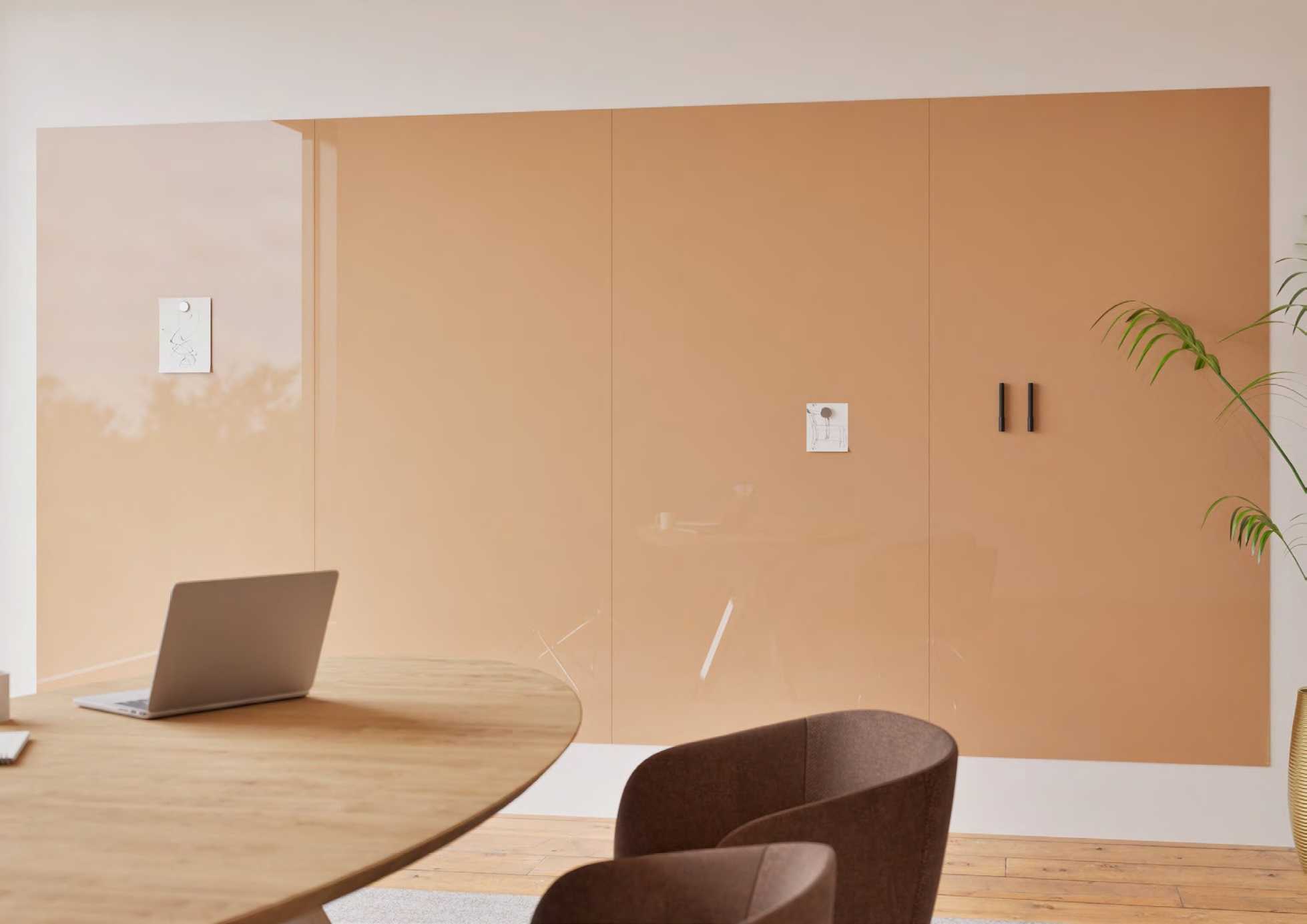 Legyen szó egy egész falat beborító „brainstorming” zónáról vagy több színes panel művészi elhelyezéséről, a Sharp üvegfal szabadságot ad az alkotáshoz. A keret nélküli kialakítás és a minimalista élek modern, tiszta és nyugodt légkört teremtenek bármely tárgyalóban vagy közösségi térben.