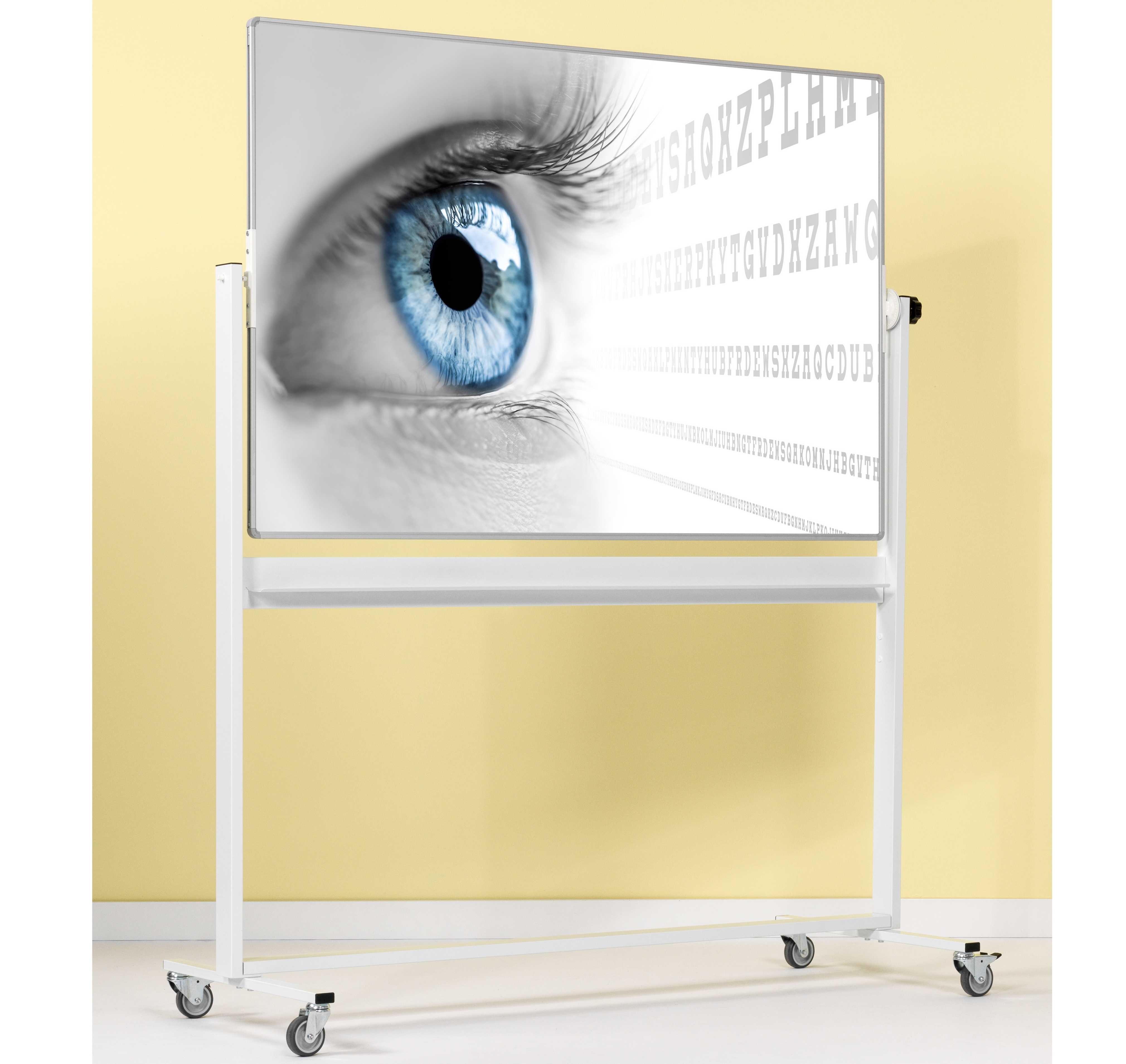 • Egyik oldal: Speciális, vetítésre optimalizált szürke zománcozott acél felület, amely ideális a tükröződésmentes vetítéshez (nedvesen törölhető).